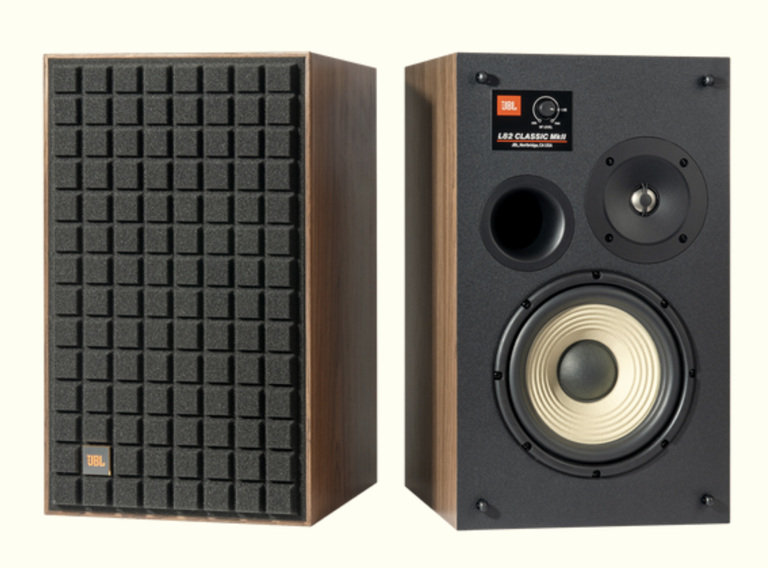 Retro design with iconic JBL styling and vintage Quadrex foam grille in a choice of black, orange, or blue